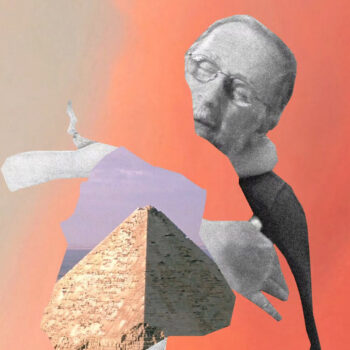 A surreal collage blends history with modern views, creating an artistic landscape where past and present converge in unexpected ways.